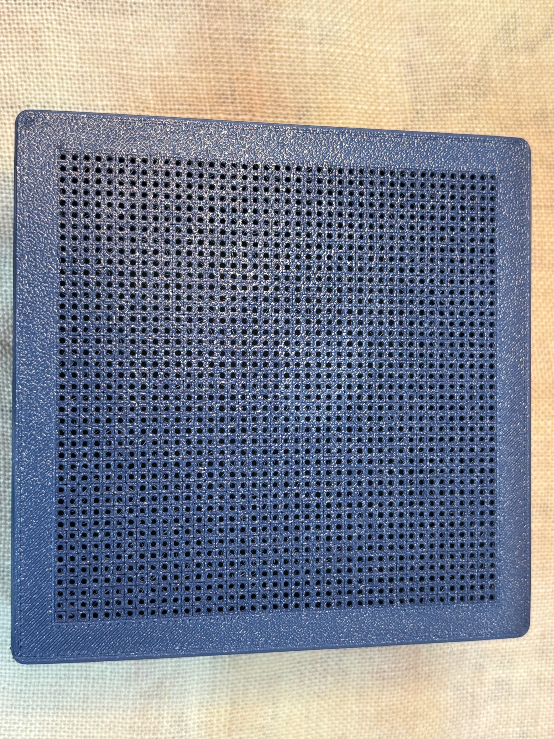 Holes are equivalent to about 14 count Aida and work best with 2 strands of thread.